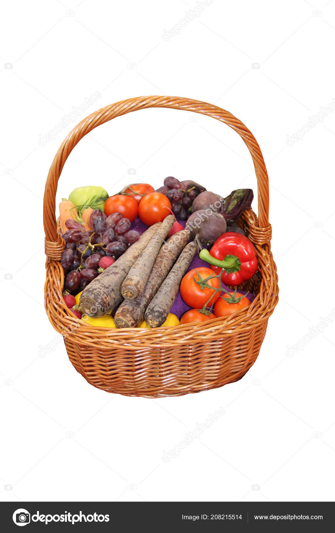 Wicker Basket Containing Fresh Fruit Vegetables Stock Photo