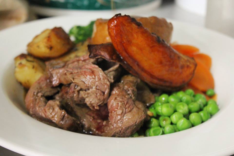 Think tender meat be it chicken beef lamb or pork were not fussy crisp and sweet roast veggies and decadent gravy.