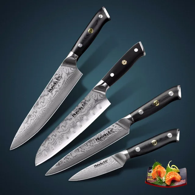 67 Layers 4 Pcs Japanese Vg10 Damascus Steel Chef Santoku Kitchen