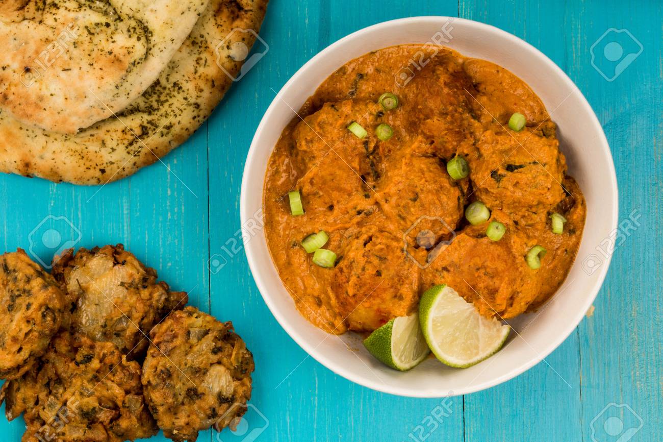 Indian Style Vegetable Kofta Curry Meal On A Blue Wooden Background