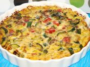 Crustless quiche with summer vegetables.